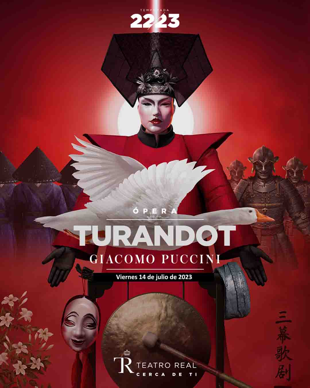 Es comptarà amb les millors veus per tal de donar vida als protagonistes de Turandot, de Giacomo Puccini, última òpera del compositor, os es convida als espectadors a resoldre els tres enigmes de la cruel princesa xinesa que construeixen el drama i on la solució, camí cap al triomf de l’amor, culmina amb una de les àries més conegudes i belles de la història de l’òpera, Nessun dorma.