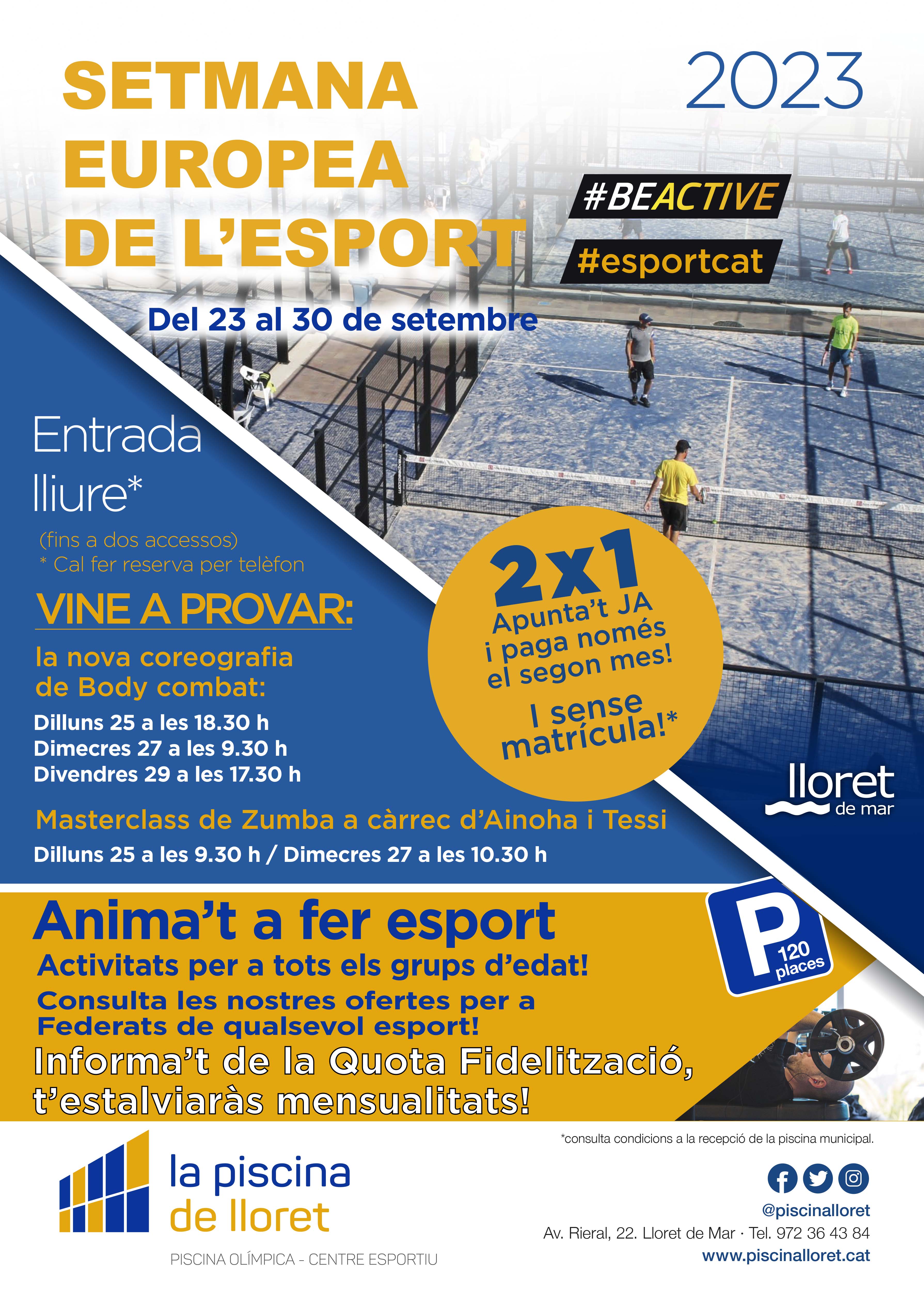 Vine a provar les activitats de la Piscina Municipal durant la Setmana Europea de l'Esport, tens fins a dos entrades lliures! ( cal reserva prèvia per telèfon). Informa't de les nostres ofertes d'abonament NOMÉS per aquesta setmana!
