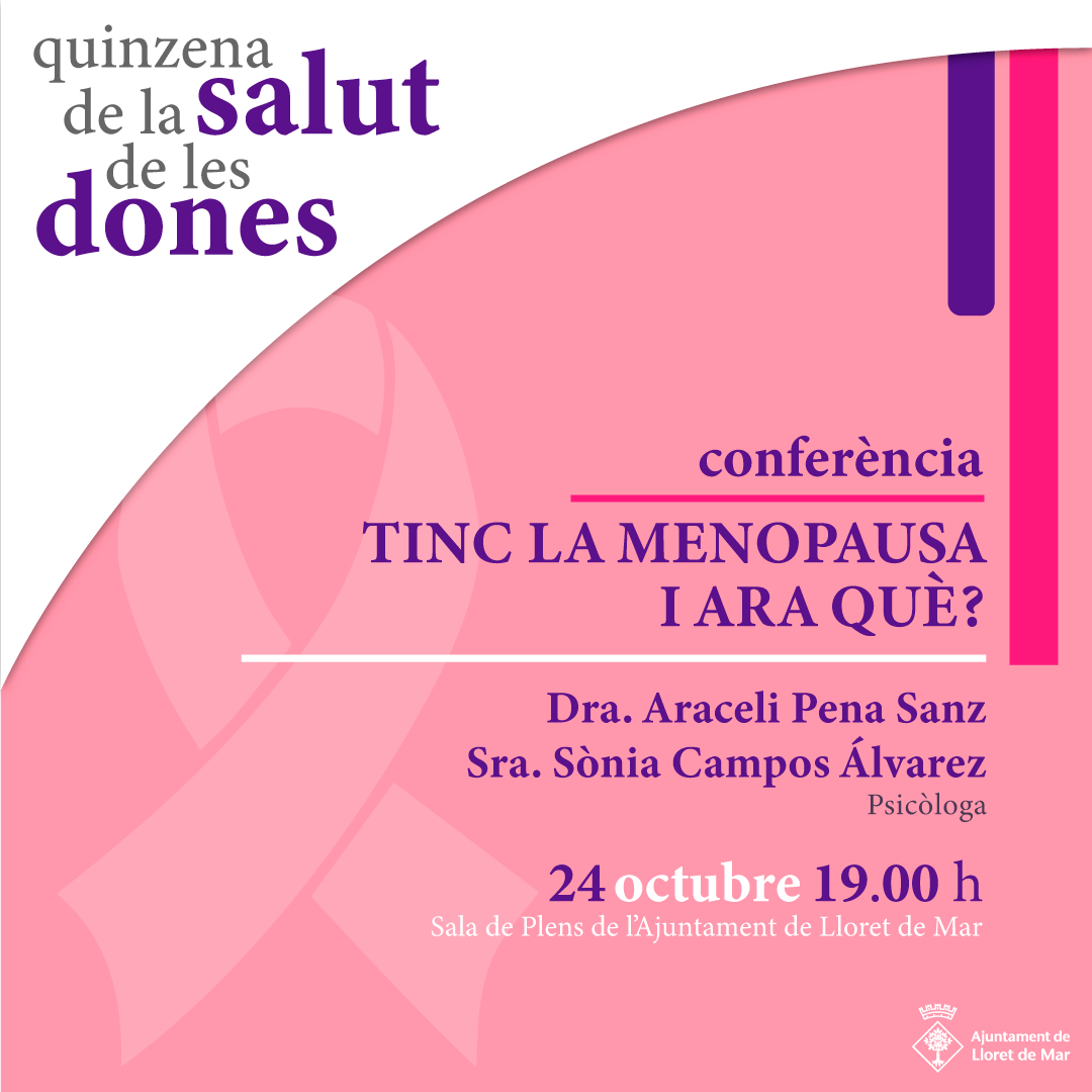 La Regidoria d'Igualtat organitza una xerrada sobre la menopuasa el dia 24 d'octubre a càrrec de la Dra. Araceli Pena Sanz i la psicòloga Sònia Campos Àlvararez en motiu de la celebració del Dia Mundial de la Menopausa el 18 d'octubre.