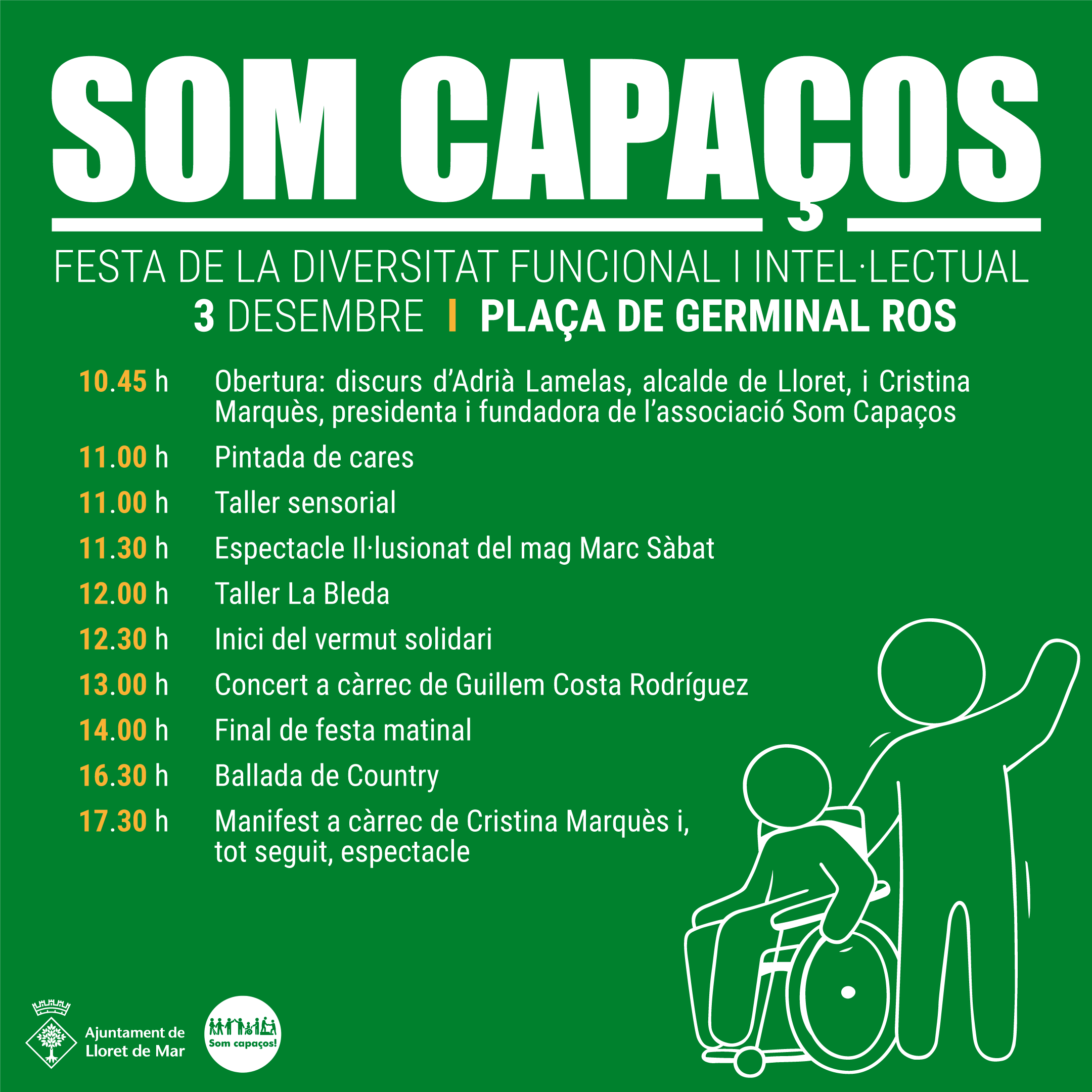Mostrar la diversitat de capacitats que hi ha a la societat, sensibilitzar la ciutadania sobre els temes que afecten les persones amb discapacitat i denunciar les dificultats amb què topa aquest col·lectiu són els objectius de la commemoració del Dia Internacional de les persones amb Discapacitat. Una efemèride que té lloc el 3 de desembre i a la qual Lloret de Mar s’hi adhereix un any més.
