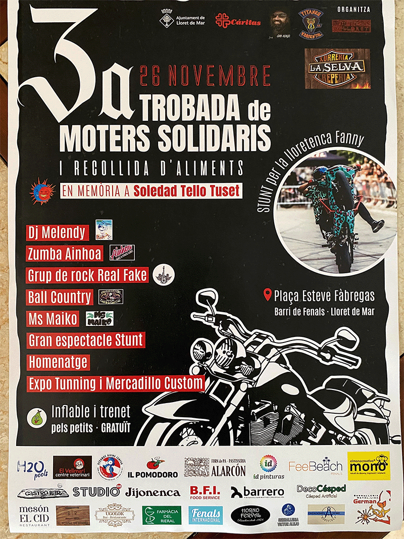 L'Associació Motera Moters de Lloret de Mar organitza la tercera matinal solidària amb la recaptació d'aliments.
