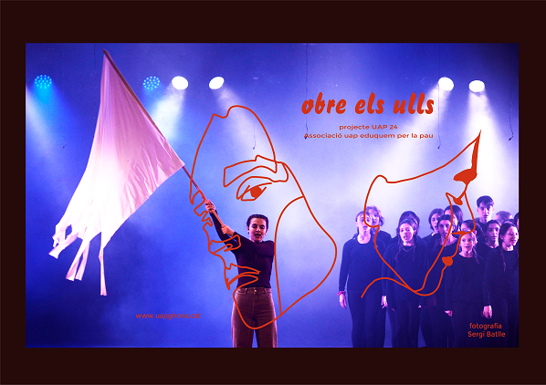Obre els ulls és un espectacle musical de creació pròpia en què participen 140 joves actors i actrius, que, sobre l’escenari, representen quatre col·lectius simbòlics de la societat contemporània. Interpreten el cor dels consumistes, que viuen enganxats al mòbil i la pressió estètica, obsessionats amb les xarxes socials, el consum, els seguidors, la imatge i la fama. Els consumistes donen pas als treballadors, obligats a fer feines precàries, mecanitzades i exigents per produir de manera excessiva i contaminant tots els productes que el mercat demana. També apareixen a escena els dominadors: el símbol del poder polític i econòmic, que identifiquen els bancs i les grans empreses preocupades únicament en generar beneficis per conquerir un món globalitzat. I, finalment, tenen veu el cor d’itinerants: el poble humil i senzill que busca un lloc al món on viure en llibertat, però tot queda arrasat per construir ciutats de luxe i negoci. Serem capaços d’obrir els ulls, adonar-nos del que hem perdut en el record i preguntar-nos pels que encara ens queda?