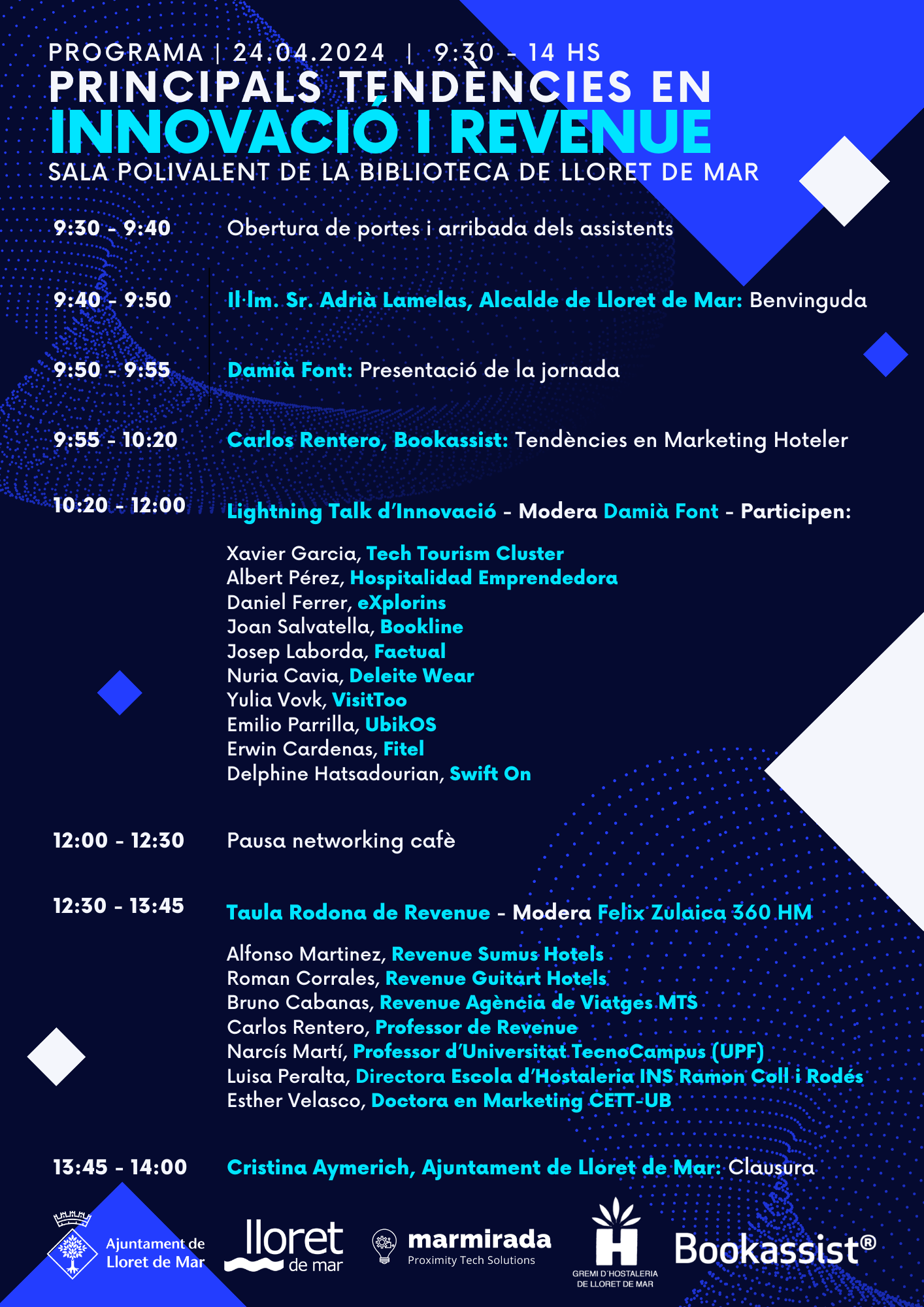 El proper dimecres 24 d'Abril t'esperem a la Biblioteca de Lloret de Mar, en una jornada on parlarem de les noves tendències que es presenten d'Innovació i de Revenue en diferents sectors empresarials.