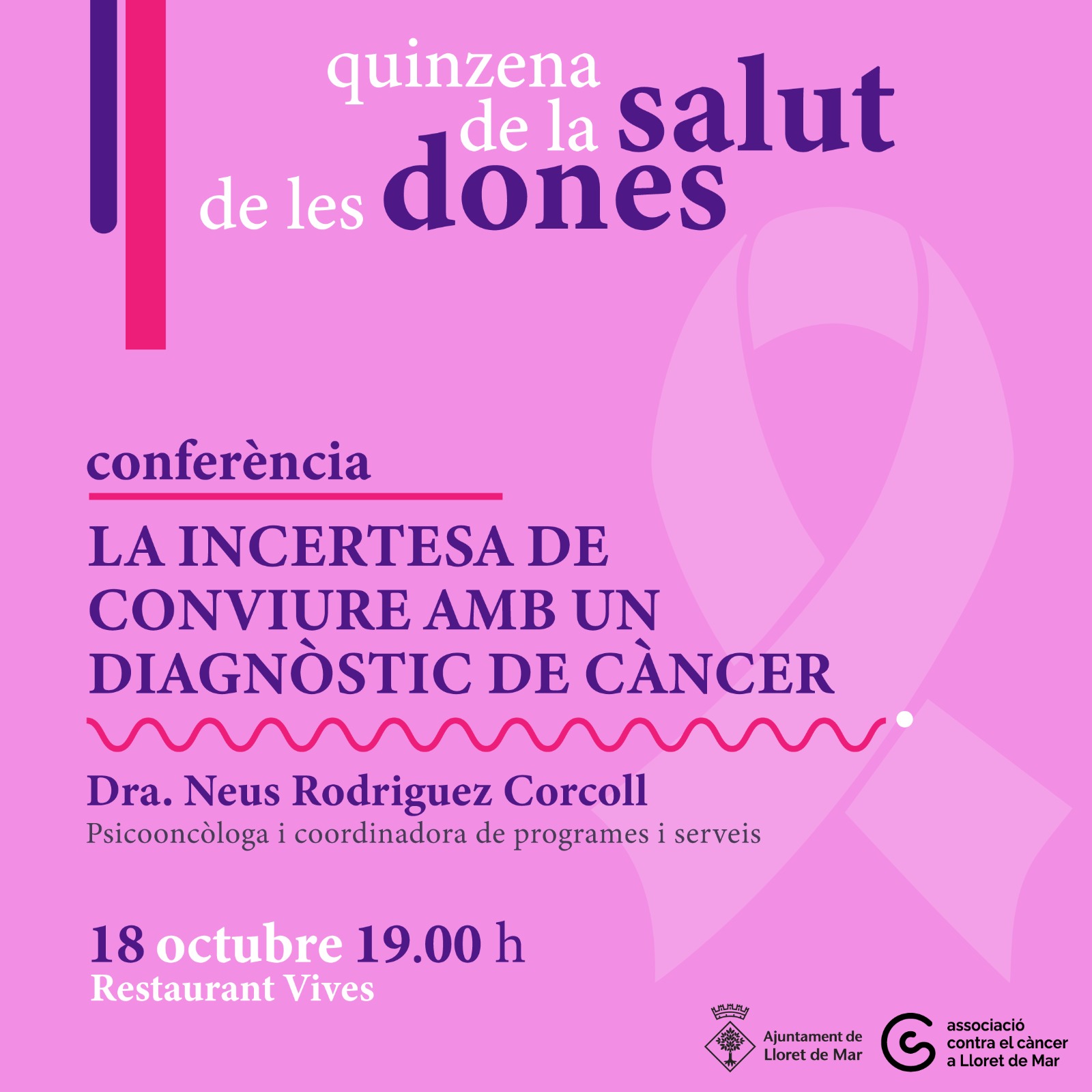 El dimarts, 28 d'octubre us esperem a la conferència "La incertesa de conviure amb un càncer de mama" a càrrec de la Dra. Neus Rodriguez, psicooncòloga i coordinadora de programes i serveis de l’ Associació contra el càncer a Girona.