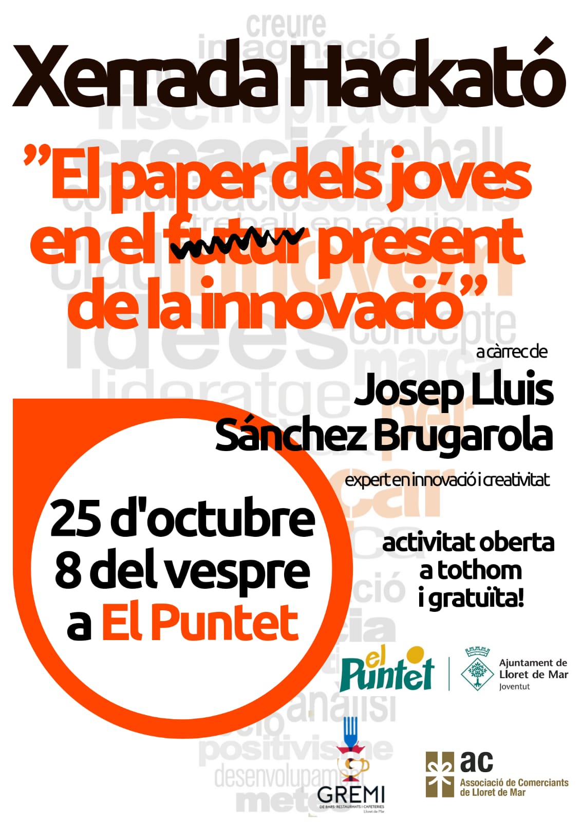 El divendres 25 d'octubre a les 20 h, Josep Lluís Sánchez expert en innovació i creativitat, estarà al càrrec de la xerrada del Hackató "El paper dels joves en el present de la innovació".