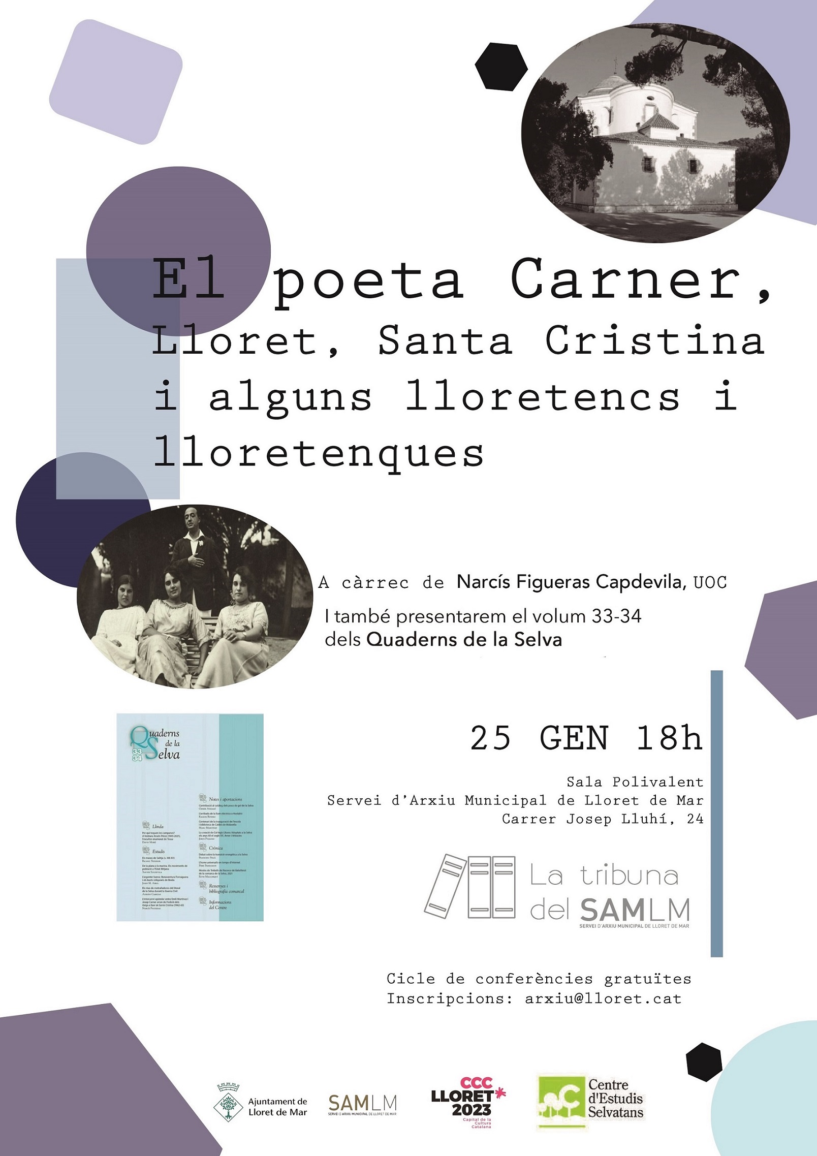 Amb el títol El poeta Carner, Lloret, Santa Cristina i alguns lloretencs i lloretenques, Narcís Figueras i Capdevila (UOC) ha realitzat un estudi al voltant de l'estada del poeta Josep Carner a Lloret de Mar entre els anys 1919 – 1920 i els vincles i relacions que va establir amb diferents personatges de la nostra vila.