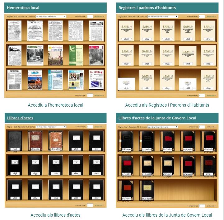 - Llibres d'actes de l'Ajuntament (1830 - 1963). Recull la transcripció, realitzada pel secretari de l'ajuntament, de les actes aprovades pel Ple de la corporació local, dels anys 1830 fins el 1963.