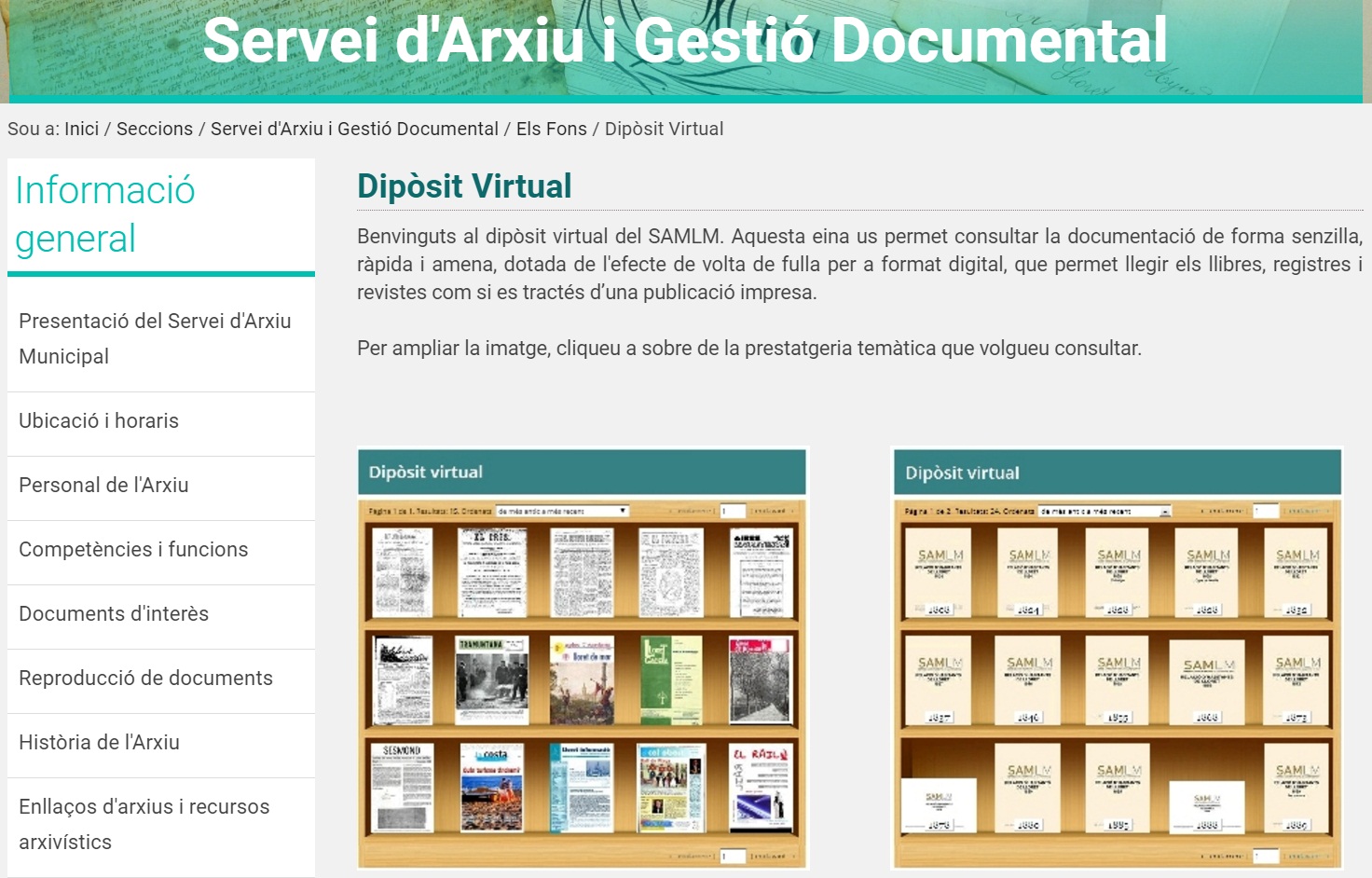 Us informem també que es realitzarà la presentació de la renovació i actualització de la pàgina web del servei d'arxiu municipal (SAMLM).