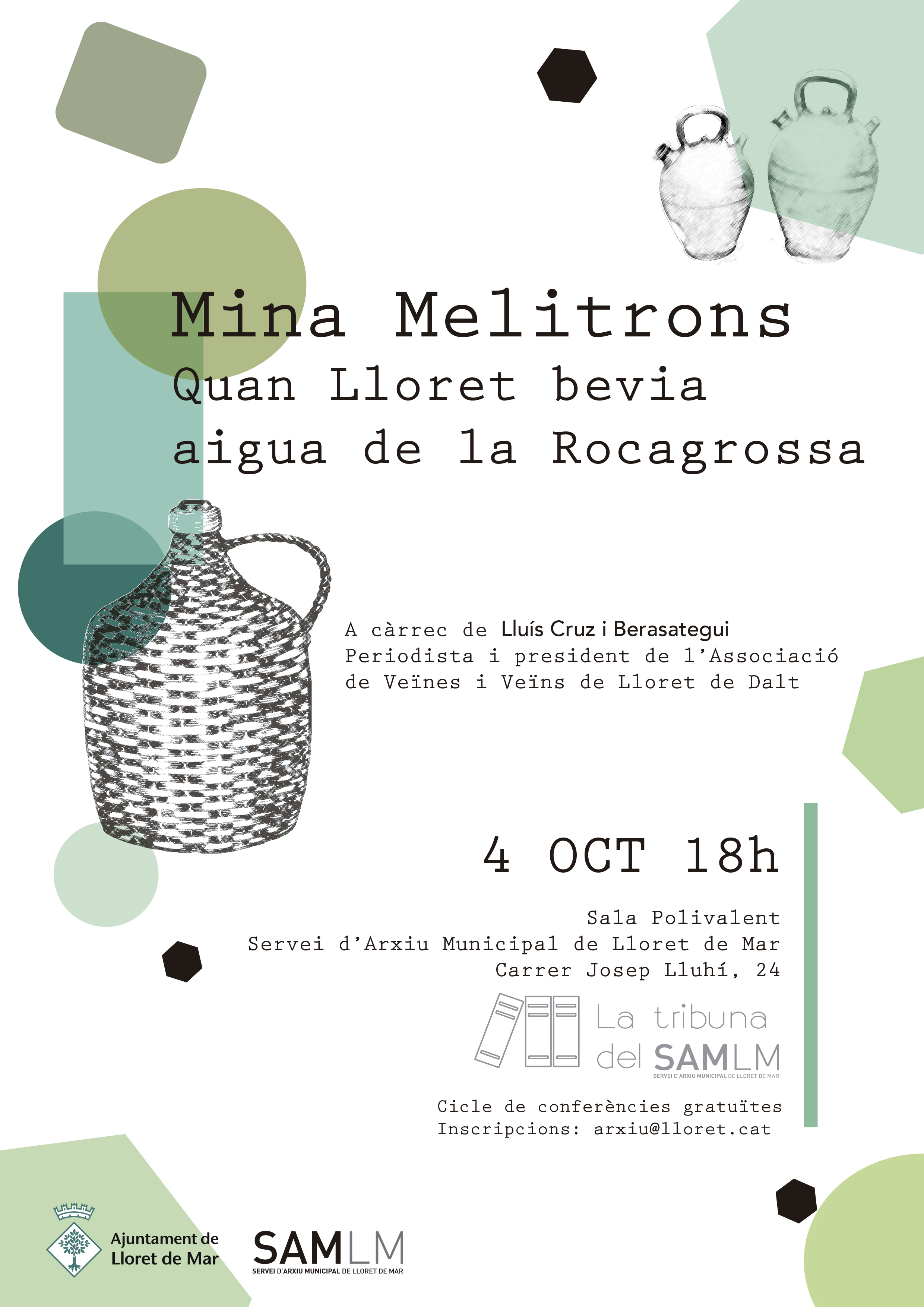 La segona conferència porta el títol de Mina Melitrons. Quan Lloret bevia aigua de la Rocagrossa i va a càrrec de Lluís Cruz i Berasategui, periodista i president de l’Associació de Veïnes i Veïns de Lloret de Dalt.