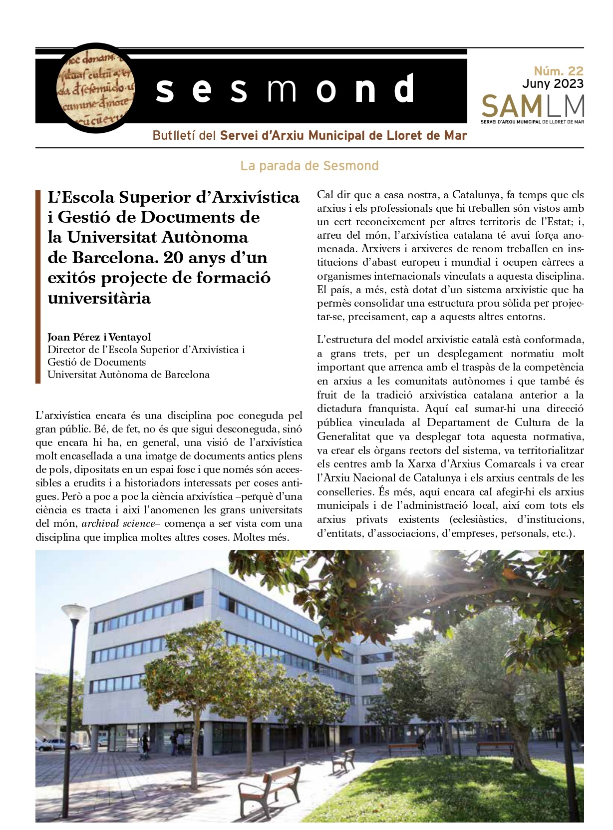 El numero 22 del Butlletí Sesmond inclou els següents articles: