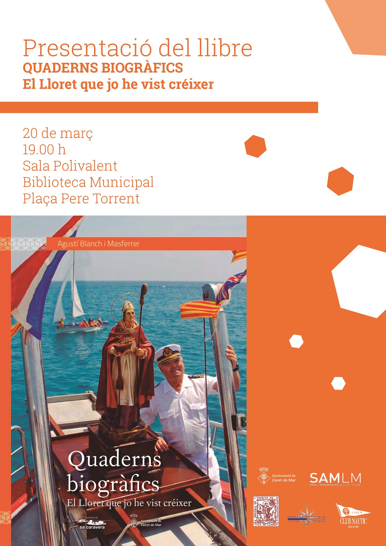 Dimecres 20 de març a les 19h a la Sala Polivalent de la Biblioteca, es durà a terme la presentació del llibre d’Agustí Blanch i Masferrer; Quaderns biogràfics. El Lloret que jo he vist créixer.