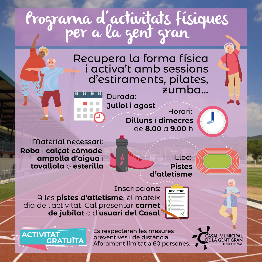 Inscripcions: a les pistes d'atletisme, el mateix dia de l'activitat. Cal presentar carnet de jubilat o d'usuari del Casal.