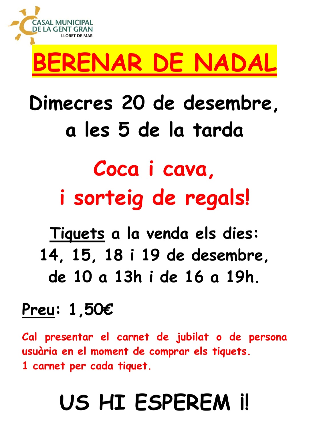 Tiquets a la venda els dies 14, 15, 18 i 19 de desembre, de 10 a 13h i de 16 a 19h.