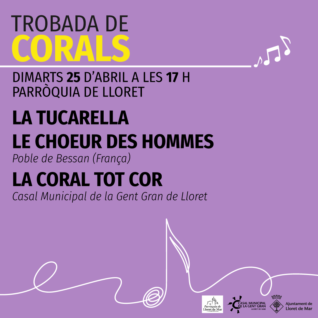 Trobada de Corals, amb la participació de les Corals Tucarella i Le Choeur des Hommes, del poble de Bessan (França) i la Coral Tot Cor del Casal Municipal de la Gent Gran de Lloret de Mar.