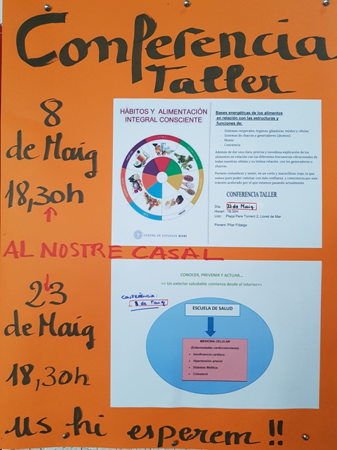 - Dijous 23 de maig: Hàbits i alimentació integral conscient. Conferència - taller.