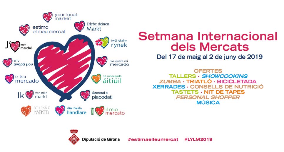 La Xarxa de Mercats Sedentaris de Girona formarà part de la sisena edició de la Setmana Internacional dels Mercats, que tindrà lloc del 17 de maig al 2 de juny. Els mercats de les comarques gironines, amb el suport de la Diputació de Girona, hi participaran per segon any consecutiu, amb el lema «Estimo el meu mercat. El mercat a prop del teu cor: amb la nutrició, la salut i l'esport».