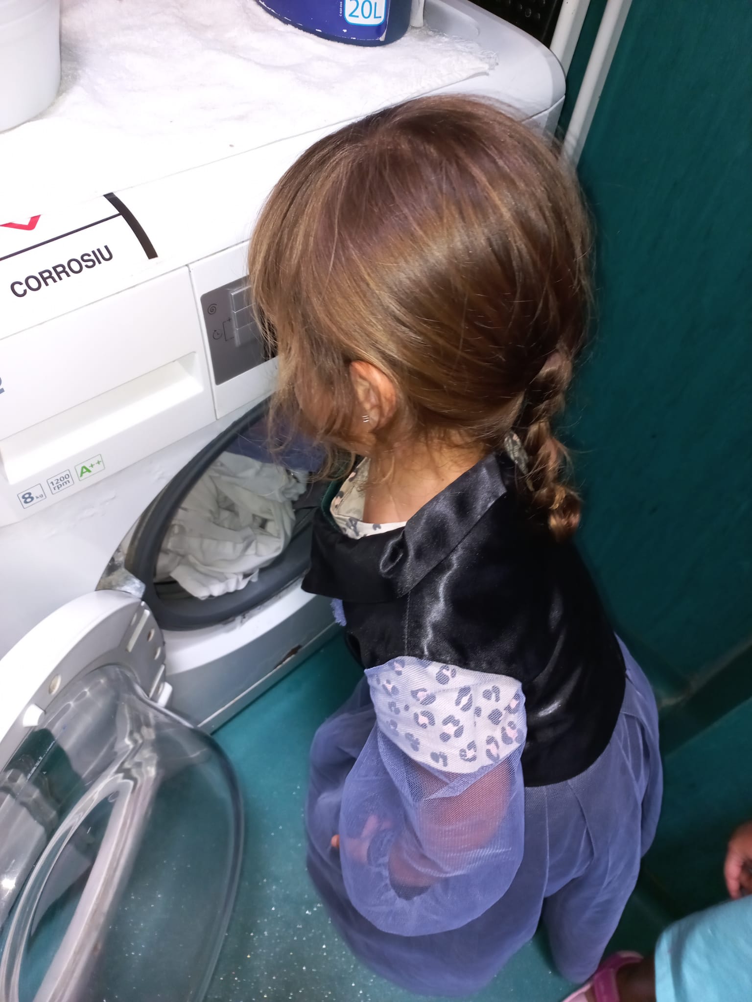 avui van amb la Claus a posar els llençols a la rentadora .
