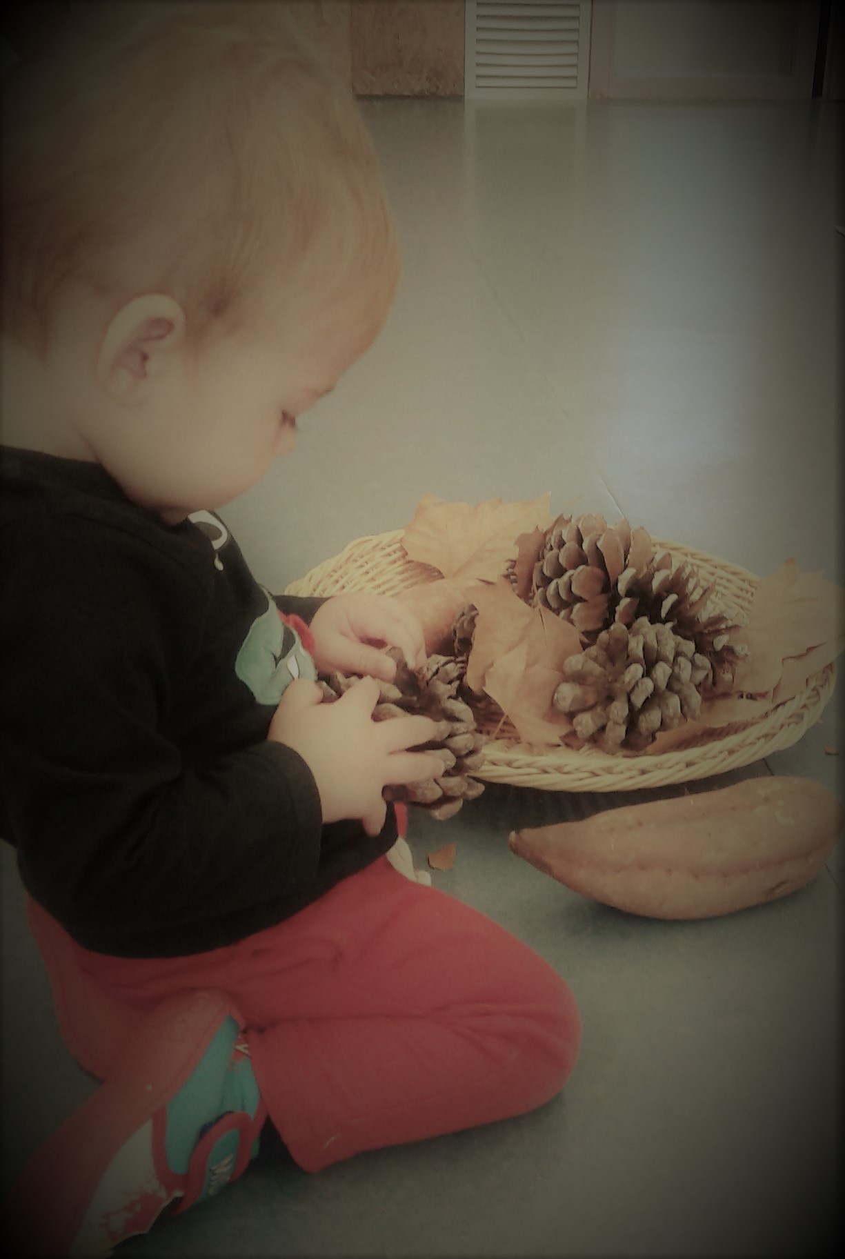 La natura ens ofereix possibilitats de sentir les diferents textures, olors i sabors . A la tardor tenim les magranes, les pinyes, les fulles seques, els moniatos, les castanyes... i a l'abast de l'infant, ofereixen possibilitats d'observació i d'anàlisi, per tant d'aprenentatge.