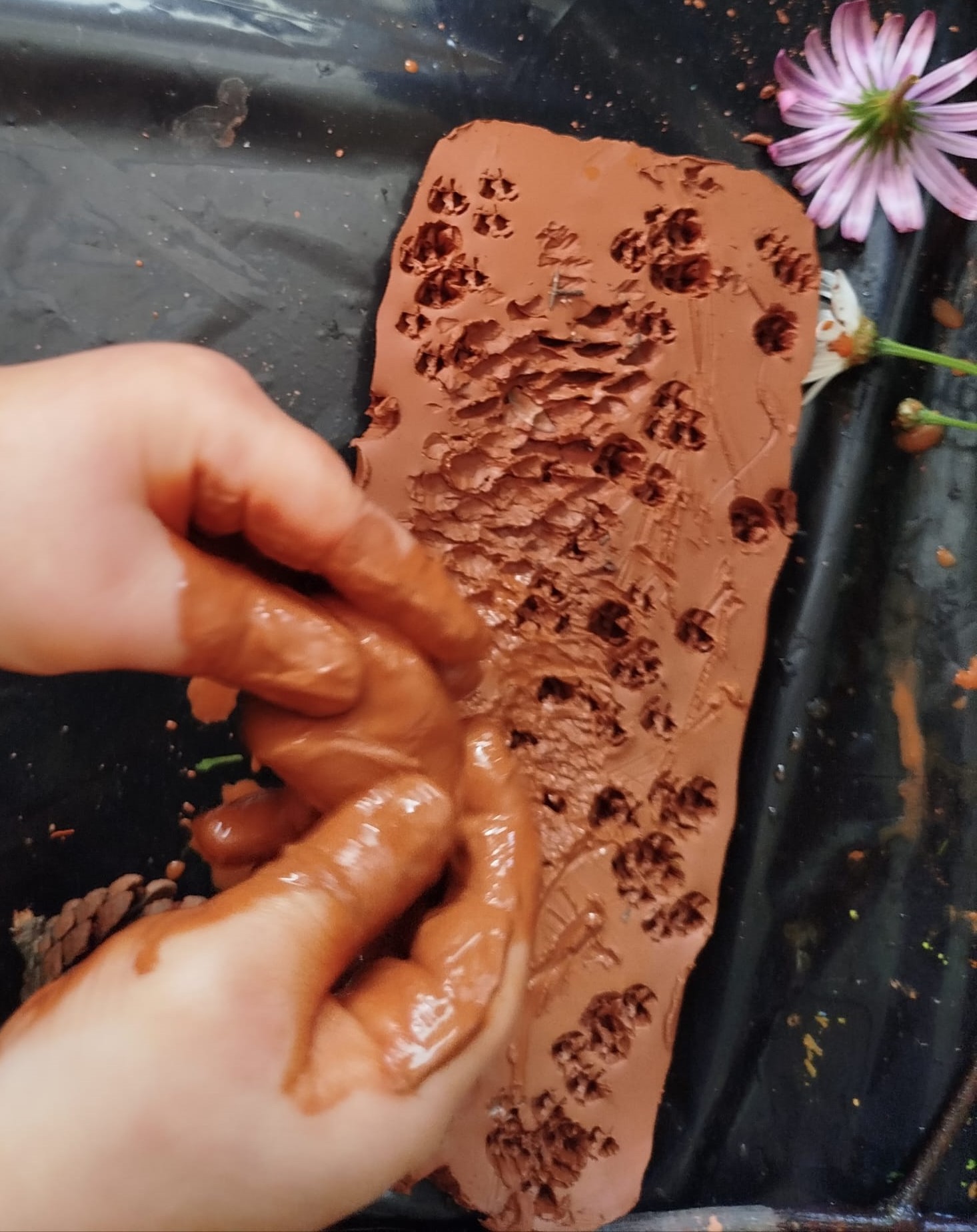 Oferint materials i textures per a descobrir noves sensacions, en aquest cas el fang, amb els infants grans de la llar