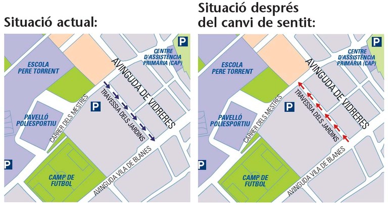 Canvi de sentit del carrer Travessia dels Jardins