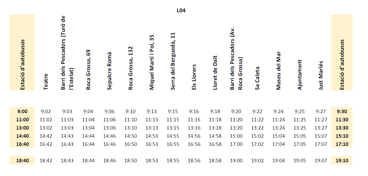 A partir de demà 1 de setembre s'estrena la nova línia L04 que seguirà donant servei a Roca Grossa, Puig d'en Pla, Vinya Rosa, Lloret de Dalt i els Llorers durant tot l'any.