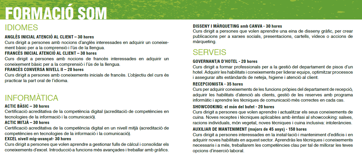 Cursos de Formació adreçats a totes les persones residents a Lloret de Mar totalment GRATUÏTS.