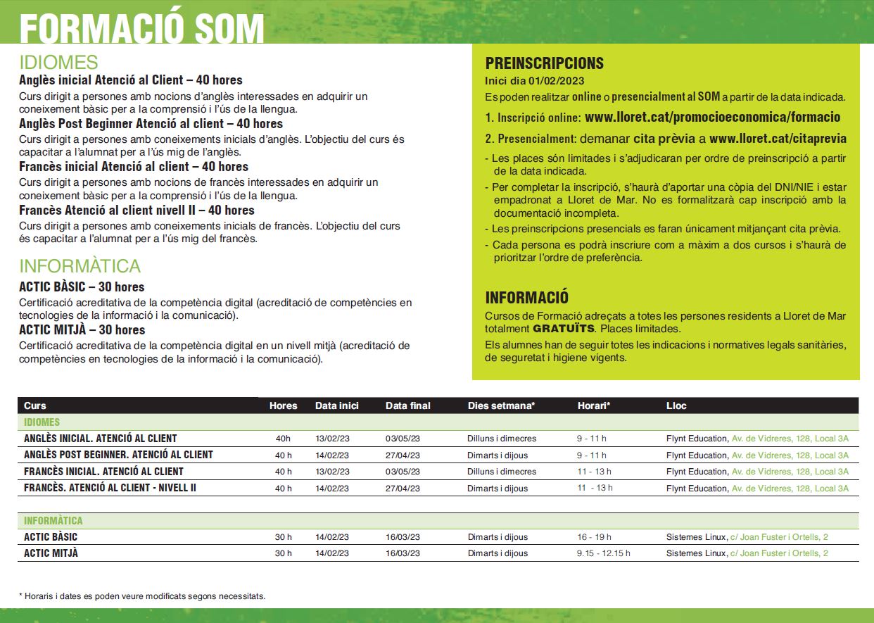 Les pre-inscripcions es poden realitzar online o presencialment al SOM amb cita prèvia a partir de la data indicada d’inici.