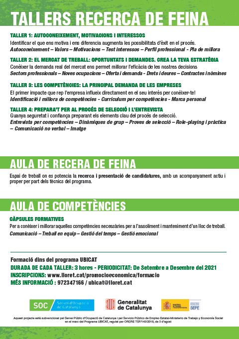 MÉS INFORMACIÓ: 972347166 / ubicat@lloret.cat