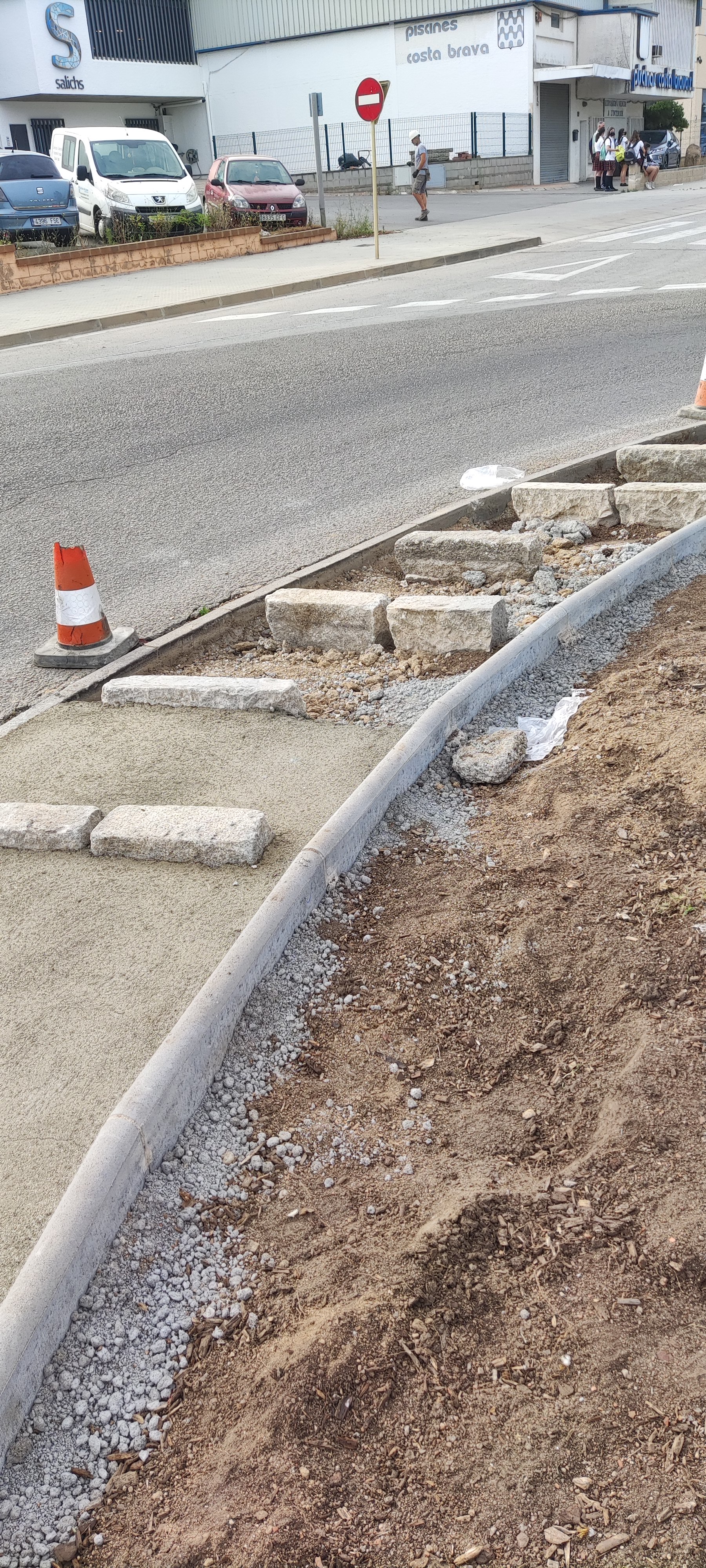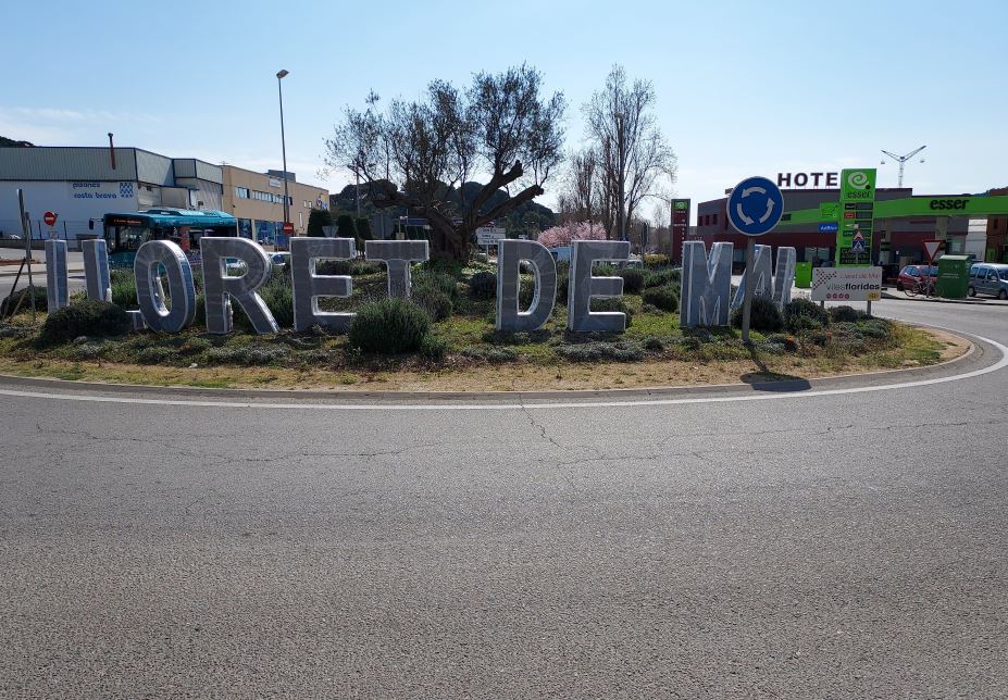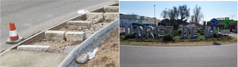 Obres a la via pública de pavimentació anella exterior, col·locació de les lletres de lloret de mar i il·luminació solar de la rotonda de mas romeu.